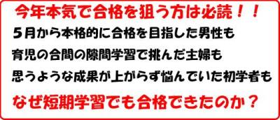 無駄なところに時間を掛けず、要点を絞って勉強をすることで合格率は高まります。